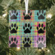 Dog Paw Pattern Quilt Glass Ornament