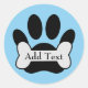 Dog Paw Print And Bone On Baby Blue Classic Round Sticker