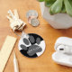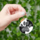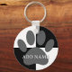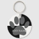 Cartoon dog paw print in grey. Squares in black and white in the background. Neutral colours. Custom keychains for homes and businesses like pet shops. Edit name to customize.
