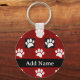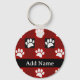 Dog Paw Print Buffalo Plaid In Black and Red Keychain