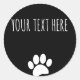 Dog Paw Print Custom Text Black Classic Round Sticker