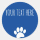 Dog Paw Print Custom Text Blue Classic Round Sticker