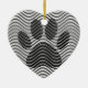 Dog Paw Print On Black And White Waves Ceramic Ornament