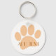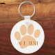Cartoon dog paw print in pastel orange. Custom keychains. Minimalist design. Edit text to customize.