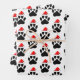 Cartoon dog paw print in black. Custom Christmas gift wrapping paper sheets. Red Santa Claus hat version. Gift wrap idea for dog lovers.