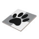 Cartoon dog paw print in black. Squares in white and grey in the background.