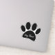 Cartoon dog paw print in black. White background. Faux 3D and drop shadow effects applied to the drawing.