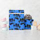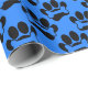 Dog Paw Prints And Bones Pattern Black Blue Wrapping Paper