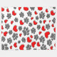 Decorative cartoon style dog paws and red hearts.