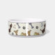 .Cute doggie personalized food bowl with a repeating pattern of cartoon bones, paws and hearts. Just edit text for your pet's name in the easy Zazzle editor. Available in two sizes. See also the dog treat box in this pattern.