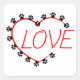 Drawings of dog paw prints, a red heart and the word "love". Original design.
