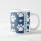 Dog Paws, White Paws, Blue Hearts, Your Name Large Coffee Mug