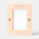 Elegant laser-etched wood photo frame to honour the memory of your loyal companion featuring the heartfelt inscriptions "In Loving Memory" and "Forever in Our Hearts" in classic serif typography, dog paw prints, and their name in clean, simple lettering.