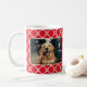 Dog Photo and Name Red Diamond Chequered Pattern Coffee Mug