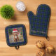 Dog Photo Personalized Modern Rustic Holiday Plaid Oven Mitt & Pot Holder Set