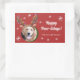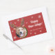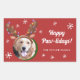 This festive Christmas gift sticker is perfect for all the dog lovers in your life! Featuring an adorable photo of a golden retriever dog wearing a reindeer antler hat against a red background, this fun sticker is sure to bring a smile to everyone's face. The photo may be changed to a photo of your own pup or the pup of your recipient! The background has pretty white snowflakes and editable text that says Happy Paw-lidays. Under the greeting text, add your family name or other text.