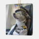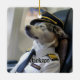Christmas ornament featuring a photo of dog pilot sleeping on an airplane. Customize it with a name or initials or a year. Perfect for a pilot, flight attendant, flight instructor, aviation enthusiast, or traveller.