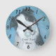 Badger is a very cute black and white border collie dog, he looks so cute because he’s offering his favourite little blue teddy bear toy to let his mum know he loves her. This collie dog protrait has a nice sky blue background that brings this clock design alive The cool clock will be loved by everyone who loves the border collie breed, they really are a very special working dog breed. This collie dog portait art clock will make a wonderful gift for someone special who loves all breeds of dogs , but especially border collies with exceptionally cute expressions, or perhaps you simply want to treat yourself to this great original design wall clock. This is a customizable clock, you can personalize it with your own text. The original artwork for Badgers pet portrait is painted in soft pastel.