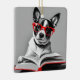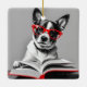 Black and White Picture of a dog Reading a read with a colour splash of red glass frame a book cover