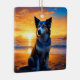 A dog sitting on a beach at sunset ai art. Dog themed personalized Christmas ornament.