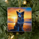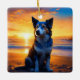 Dog sitting on Ocean Beach at Sunset Ceramic Ornament