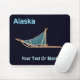 Let 'em know what you do for fun during winter. A dog sled with a teal sled bag superimposed on a starry background. Text reading, "Alaska" appears in glowing blue and white. You may add your own additional text both on the sled bag and at the bottom.