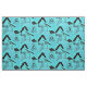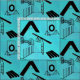 Dog agility equipment silhouettes show against a blue green background making a colourful pattern to remember one of your favourite dog sports. The background colour is not solid. It has intentional variations to create a slightly broken pattern.