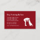 Business card template for a dog trainer or obedience classes. Includes image of a pet care professional and dog working together.