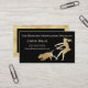 Dog Trainer Gold Faux Foil and Black Dog Behaviour Modification Specialist Business Card. Pretty faux gold sparkle foil silhouette of a female dog owner and run away dog. Edit text to personalize and add important information about your business. More at www.PrettyBusinessCards.com