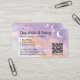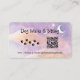 Custom business card for dog walkers featuring pink and purple celestial background with moon and stars on both sides! Try it out to see how it looks! Simply add your contact info and custom URLs to your website, social media, and/or price list. You have the option of adding one or two URLs. There is another QR code on the back with a text area and little paw prints. Several card options and paper styles available.