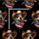 A Blue Heeler portrayed as a cowboy wearing a leather hat paired stylishly with a USA-flag bandana, embodying American pride and themed charm.