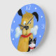 This wall clock is made from an original acrylic painting by dutch illustrator Ans Collijn©. It shows a yellow funny dog and a black and white cat. Friends for ever. Pick your own clock color.