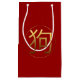Golden Dog Symbol with an embossed digital effect on red small gift bag. You can easily change background colour and add text by clicking the customize button. Matching favour box, paper napkin, paper plate, button, greeting card and more... Perfect for Chinese New Year of The Dog 2018 or Birthday (people born in Dog year). ---- "The Dog (狗) is one of the 12-year cycle of animals which appear in the Chinese zodiac related to the Chinese calendar. The Year of the Dog is associated with the Earthly Branch symbol 戌. The character 狗 refers to the actual animal while 戌 refers to the zodiac animal. (...) People born within these date ranges can be said to have been born in the "Year of the Dog", while also bearing the following elemental sign: