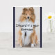 Sweet photo of dog with message, "I heard it's your Birthday.", is featured on the front of this greeting card. Inside message states, "Did you know in dog years you'd be dead! Happy Birthday and Many More Human Years"! A great way to send your friends or family members a little "older" birthday humour!