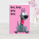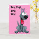 Cute, big eyed dog on the front as well as inside this card. "Bark!" at top of front and "That means "get well soon"" inside.