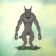This cryptid/horror illustration by Richard H. Fay features a terrifyingly wolfish dogman (or werewolf, if you prefer) standing upright on its hind legs.