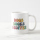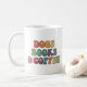 Dogs, books and coffee: the perfect combination for bookworms, animal lovers and coffee addicts. Retro vintage hippie inspired design.