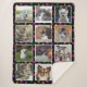 Get cozy with this cute cat and dog photo blanket featuring twelve custom photos framed in white over a colourful paw print patterned black background. Add your own special touch with your favourite pet photos.