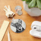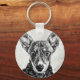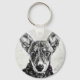 A cool key chain with a sketch of a dog face looking straight at you.