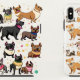A playful pattern featuring various cartoon dogs in different poses and expressions.