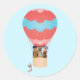 Cute illustration of different breeds of dogs in a hot air balloon.