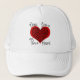 Fun dog trucker hat! If you have a dog as a pet then you know they leave paw prints on your heart! Design has a big red heart with lots of paw prints on it! It also reads "Dogs Leave Paw Prints on Your Heart"