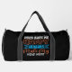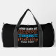 This humourous black duffle bag features the bold statement "DOGS MAKE ME HAPPY HUMANS Make My HEAD HURT." The vibrant orange and blue distressed text adds a playful touch. Perfect for dog lovers who prefer the company of canines to humans, this bag is a fun way to express your true feelings. Edit colour of the bag caps and body in the Design tool to your favored colours.