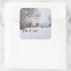 dogs playing winter snow scene landscape painting square sticker