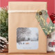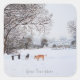 This original little snow scene landscape painting shows two mixed breed dogs, having fun in the fresh carpet of crisp snow. The brown and black dog is accompanied by his friend a german shepherd/ golden labrador cross breed dog, the two of them are gazing across the snow covered landscape to the rooftops below the hill. The two pals have just been playing in the snow covered trees and are taking a little breather from their doggy fun and games. This original picture of two dogs in the snow makes a great square Christmas sticker. This is a customizable sticker, you can personalize it with your own text. The watercolour snow landscape painting is titled "Fun In The Snow" The scene is of a golf course in South Woodford on the edge of East London England.