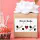 A fun saying 'dogs rule' accented by black paw prints, bones and a red heart in the centre. Customize as desired.