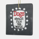 A cute typographic design that says "Dogs Should Rule The World". It's black and red text on a white rectangle with funky, playful dots surrounding it sits on a solid, textured grey background.