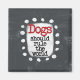 A cute typographic design that says "Dogs Should Rule The World". It's black and red text on a white rectangle with funky, playful dots surrounding it sits on a solid, textured grey background.