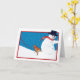 A dog’s holiday greeting. Dog meets snowman