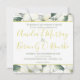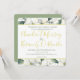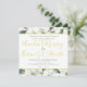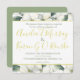 Modern dogwood blossom wedding invitation in soft watercolors of sage green, grey & yellow ochre.